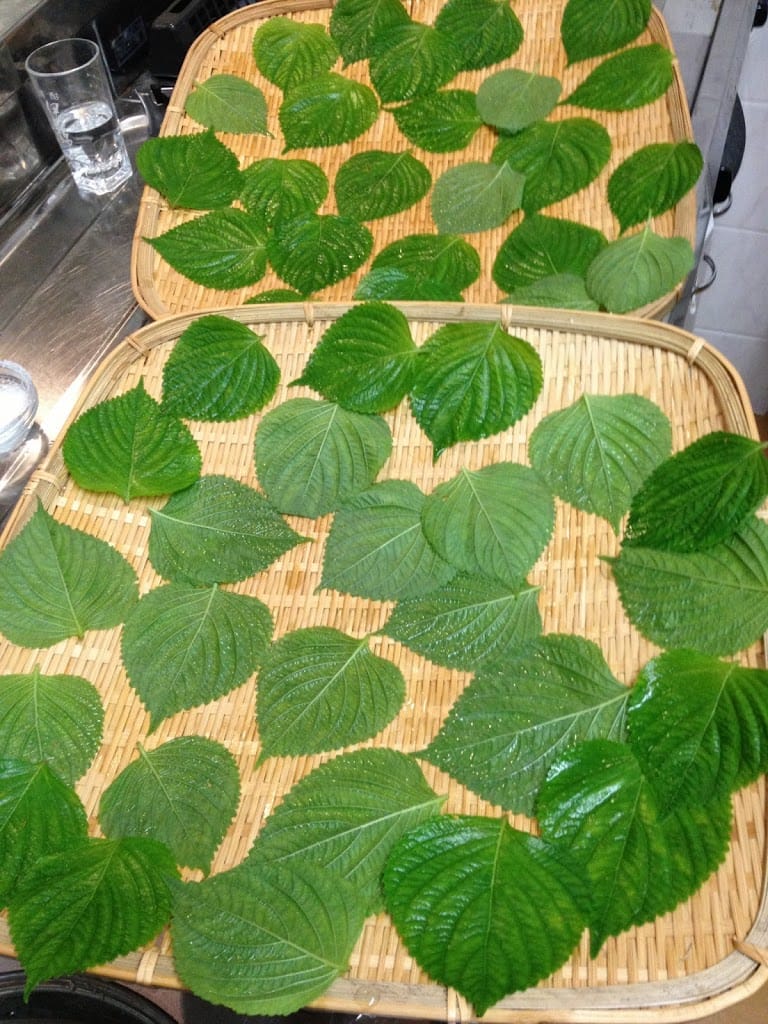 今日は卵サラダと,エゴマの葉を漬けたよ.