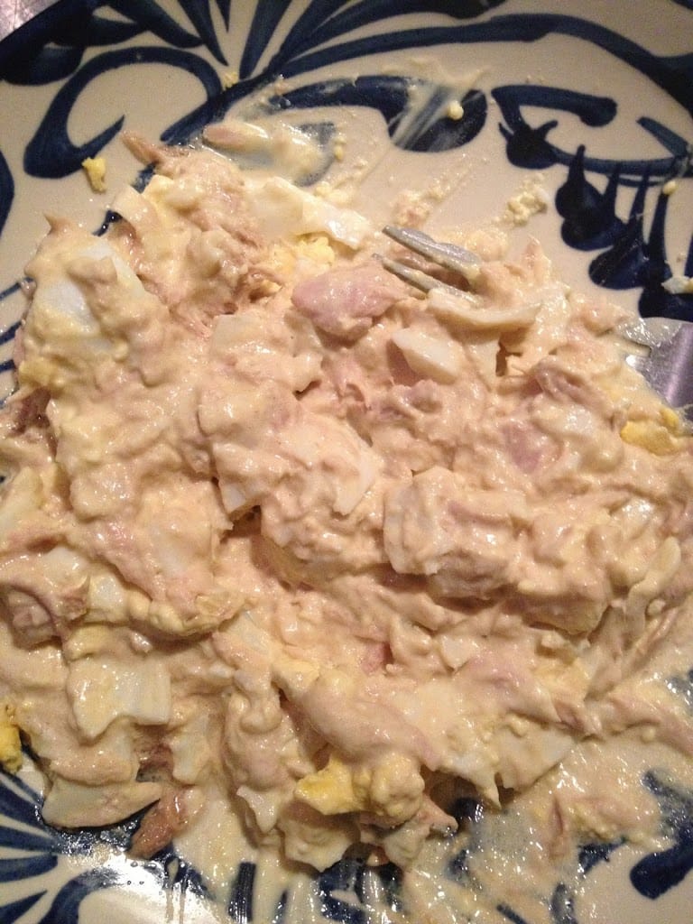 考えてみると,卵とパスタ,マヨネーズを和えたものは好物なのよ.