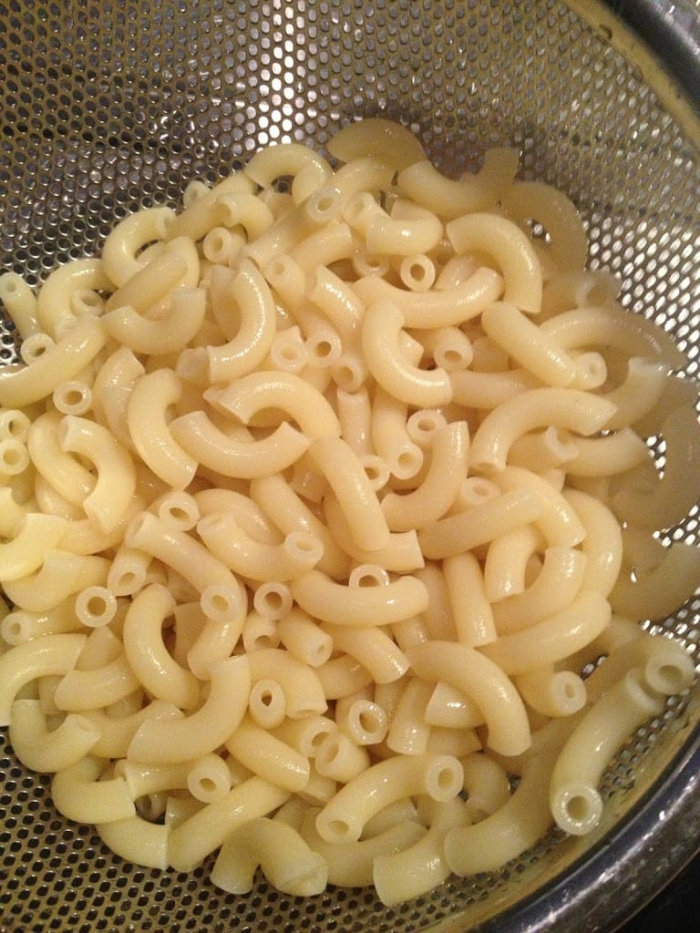 マカロニをテキトーに茹でて,冷水で冷まします.