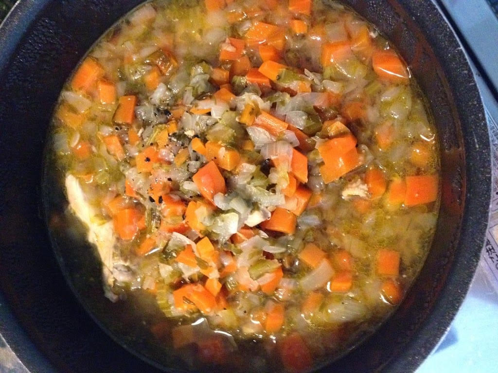 先日、香味野菜と鳥の骨付き肉(ドラム?)のスープを作りました。