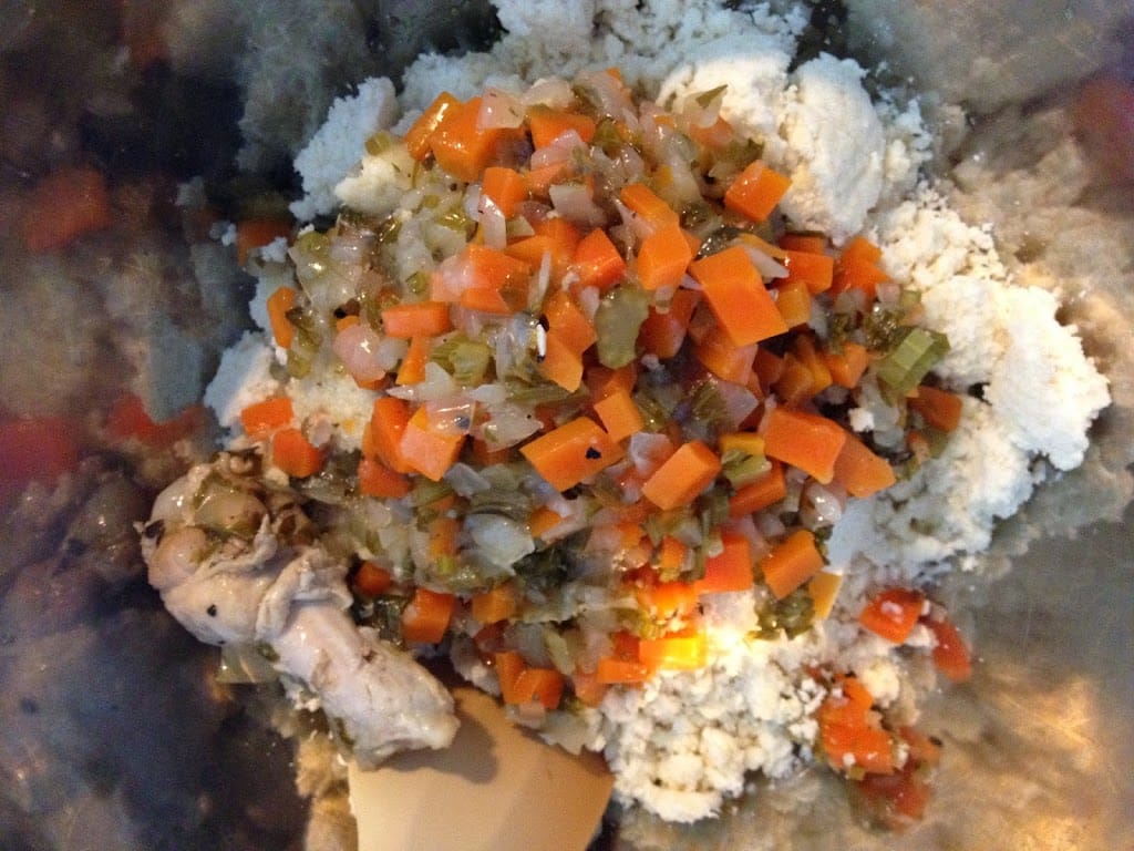 以前に書きましたが、気が向いたときに香味野菜を炒めて肉とともに煮たスープをまとめ作りします。