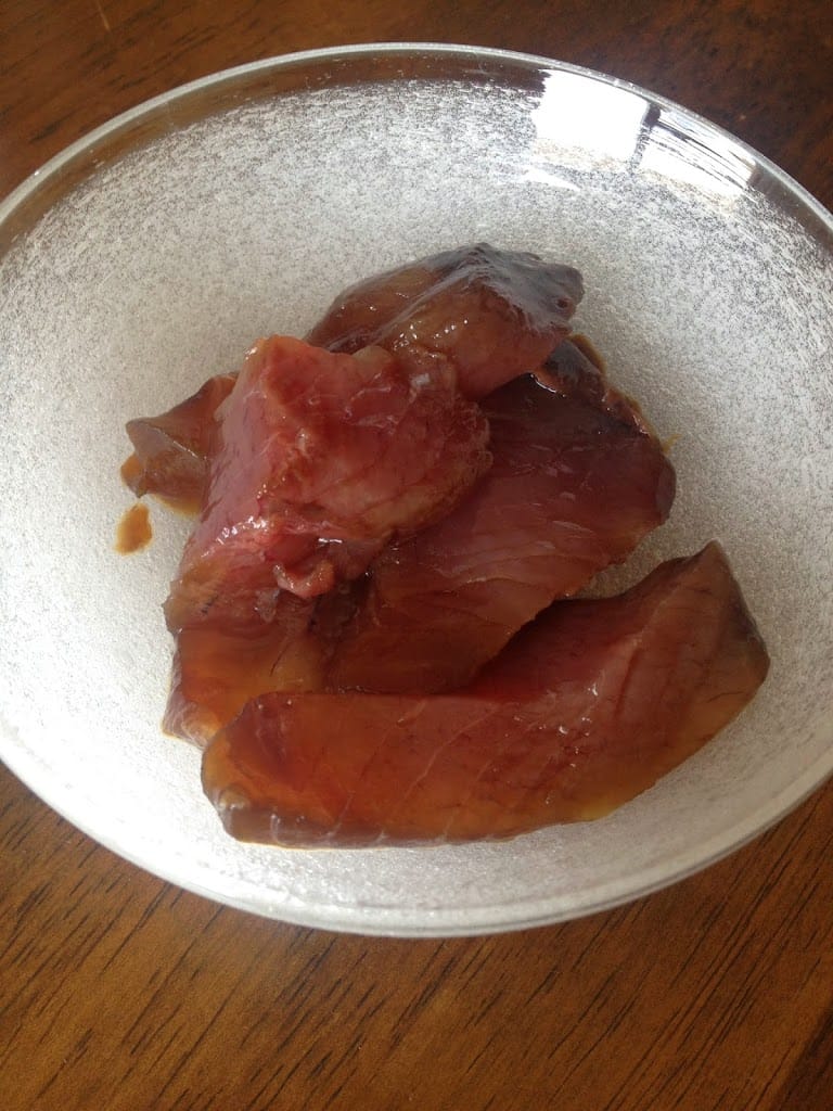半分はお刺身でいただいて、残りを自家製麺つゆでヅケました。