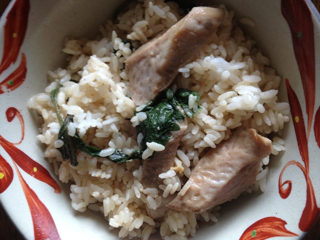 - 炊き立てのご飯が入っている炊飯器に,漬け汁ごと投入し,さっくりと混ぜ,しばし放置.
