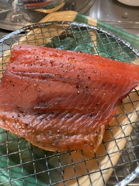 簡単だけど、このやり方が出来上がる何かはそもそも「鮭とば」なのかとか、食中毒を予防できているのか、アニサキスなど寄生虫は大丈夫か、とかは不明です。