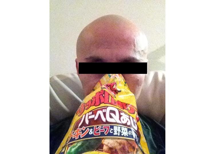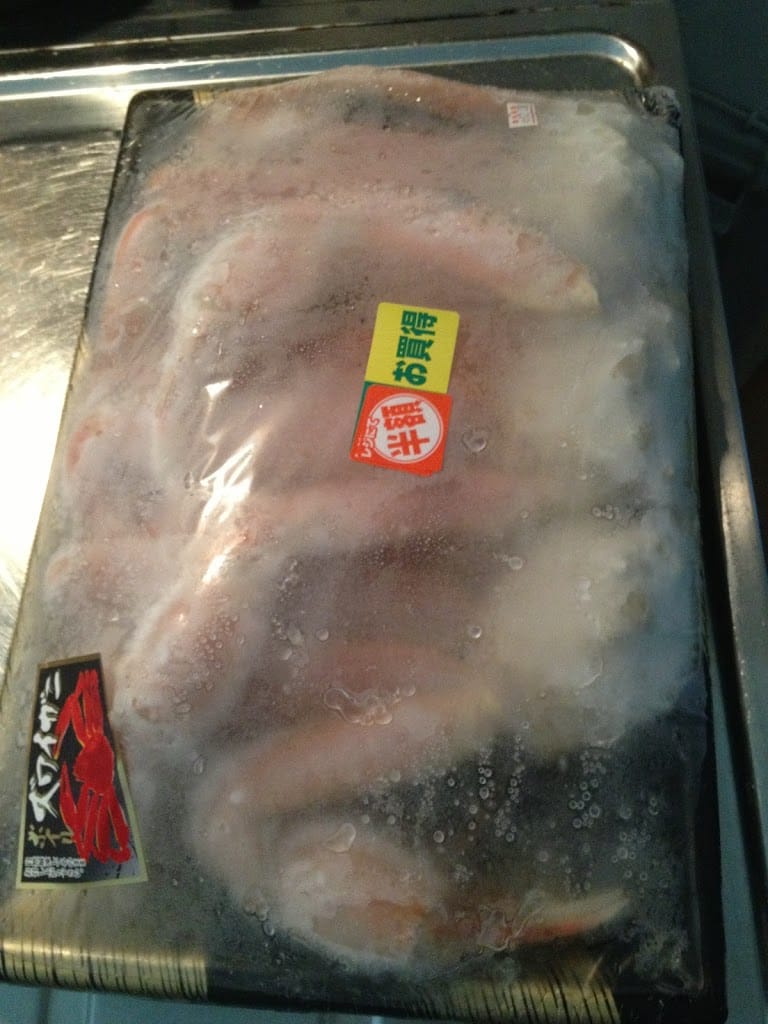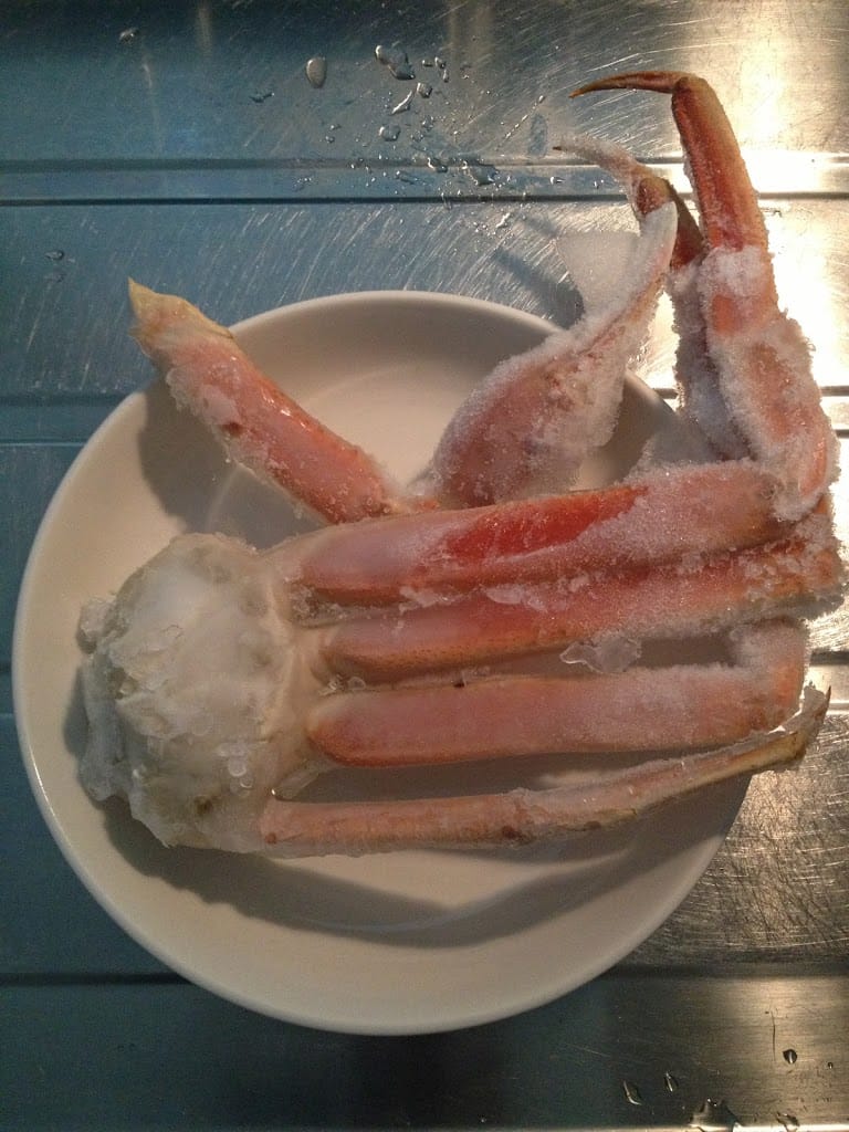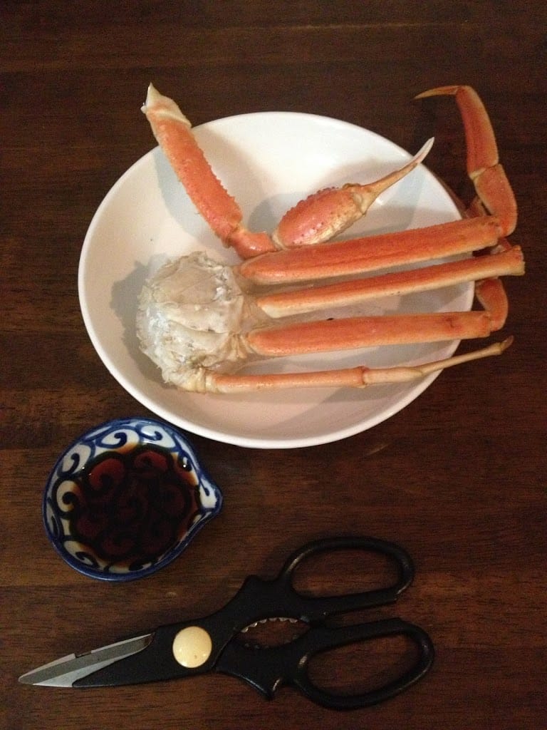 夜:半額のかに,チューハイ,ワイン,スナック菓子(!),生ハム,カップめん(!)