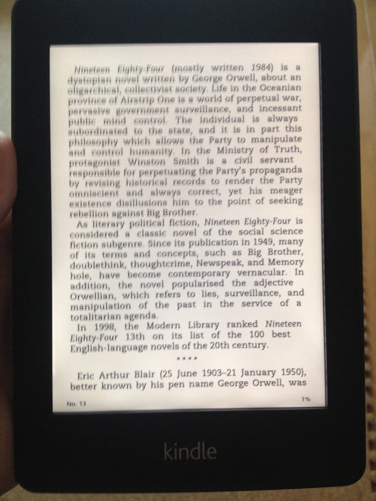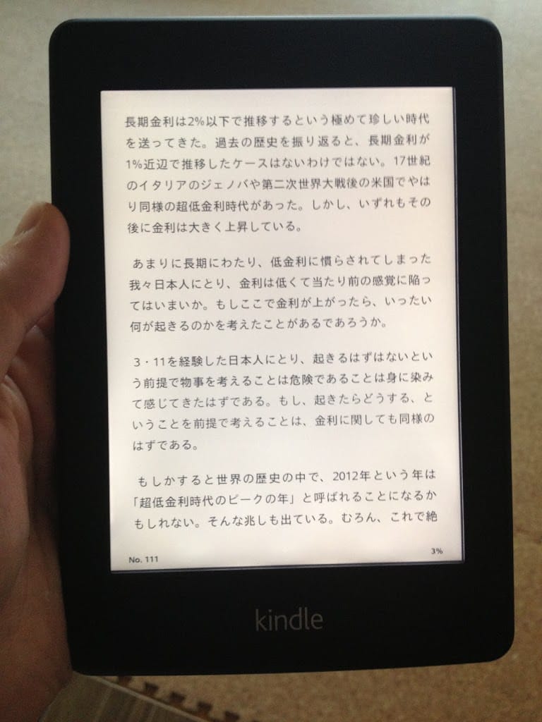 今日30分くらい英語を読んだけど,ペーパーバックより読みやすいと思った.