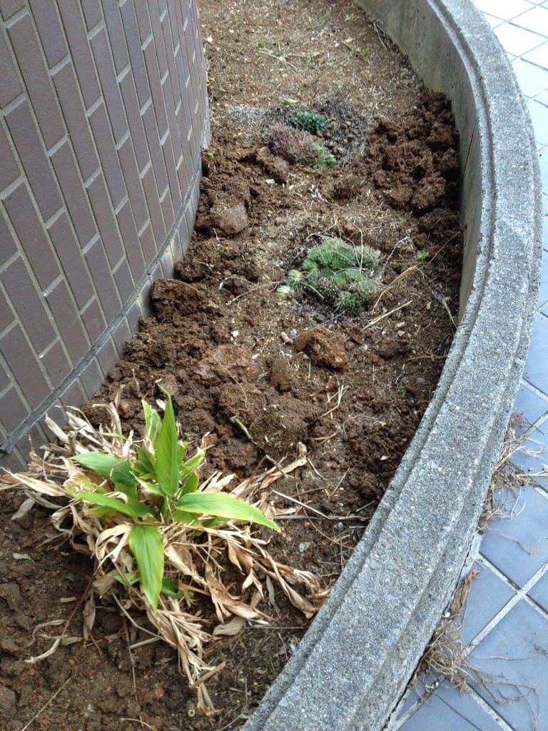 - 真ん中の丸いの二つ:このコたちは多肉です.名前は知らぬ.植え替えるとすぐ鉢いっぱいまでひろがってしまう元気な人たちなのですよ.これ以上広い鉢ってのもアレなので,広いところにお引越しです.
