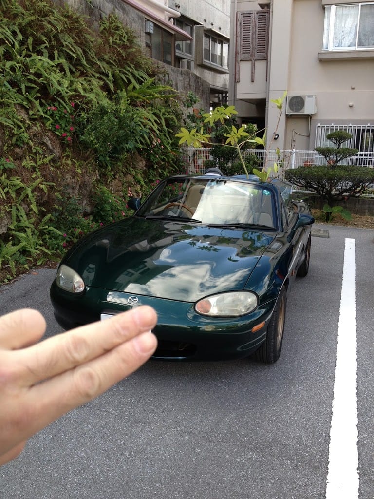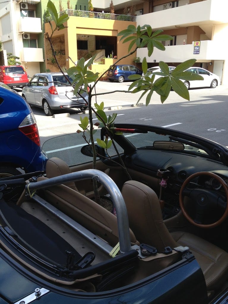 洗車したばかりのロド男に乗せます.