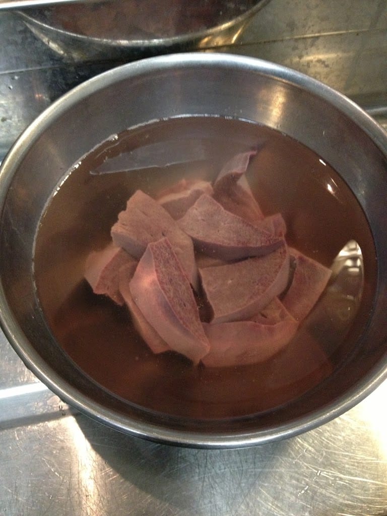 豚レバーを水にさらしておきます