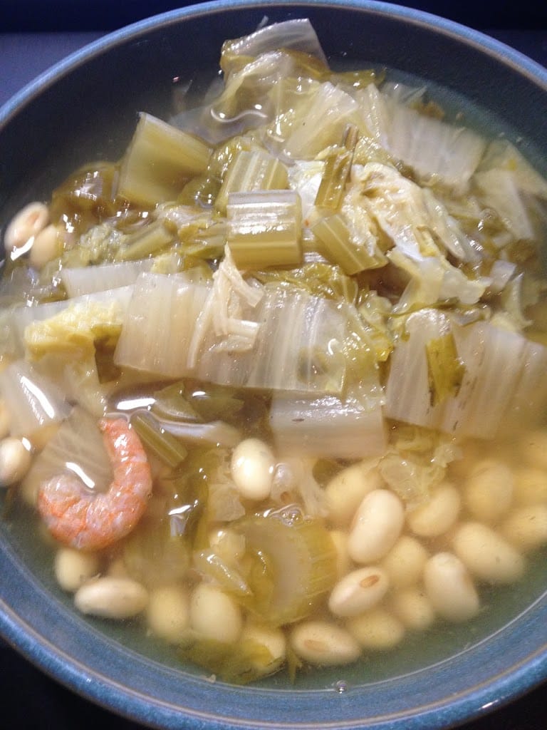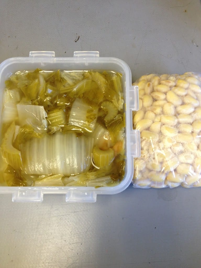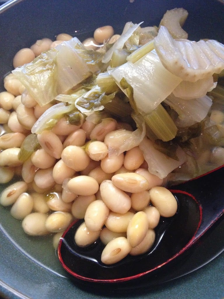 夕方:夕べ作ったセロリと白菜の煮物と煮大豆