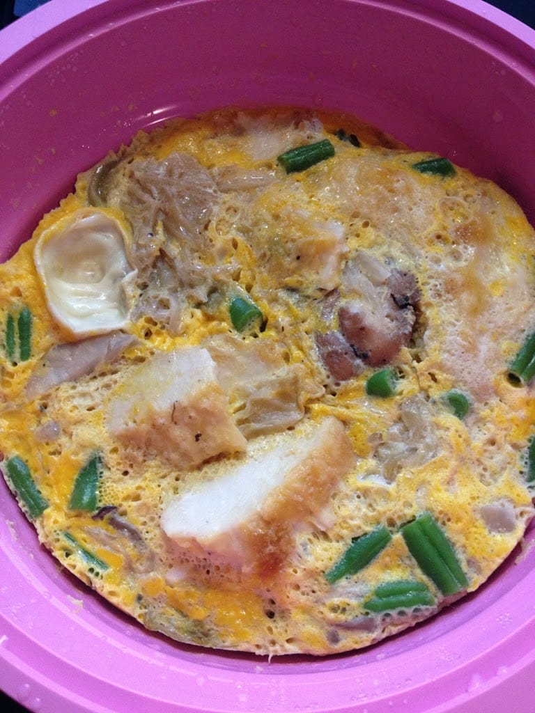 夜:衣なしチキンカツとインゲンの卵とじ・シリコンスチーマーにて