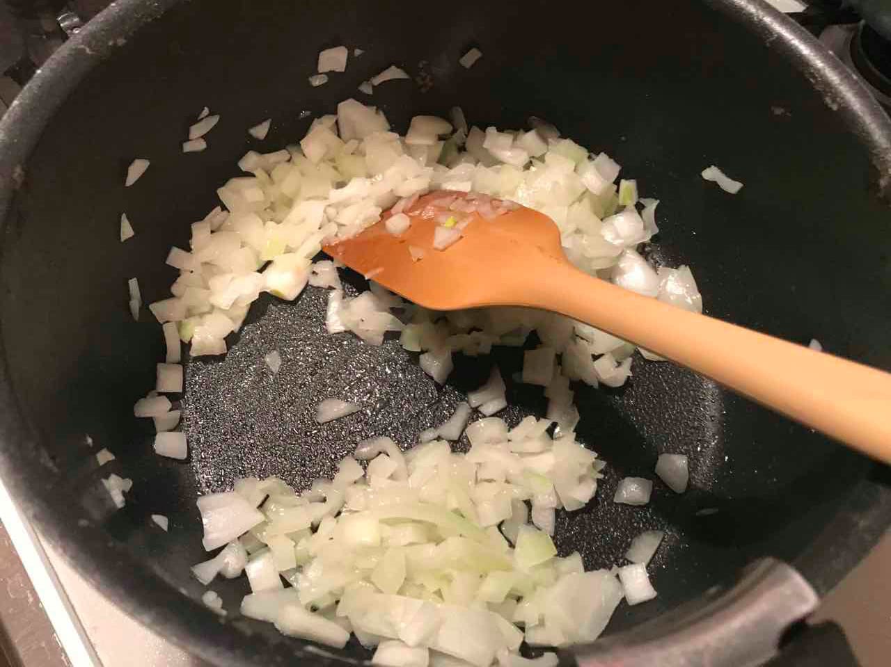 - 玉ねぎをみじん切りにして、しんなりするまで炒める