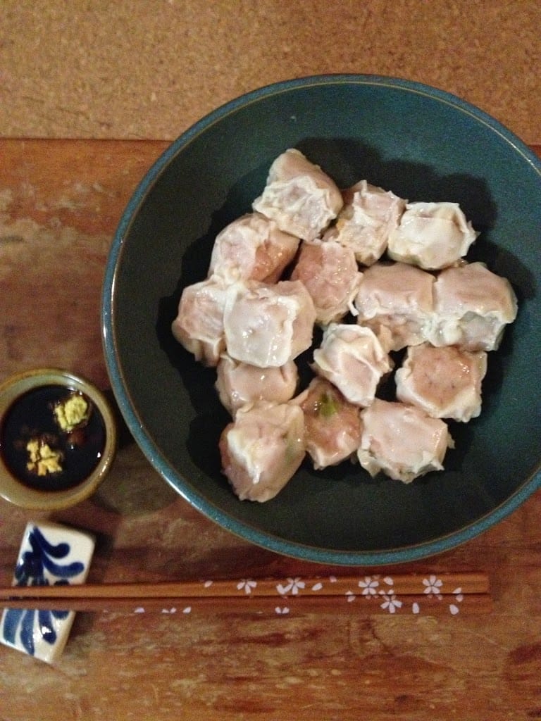 夜:崎陽軒のシュウマイ!!!(糖質制限的にはたぶんダメだけど,在庫の賞味期限が近くなってしもうたので.)