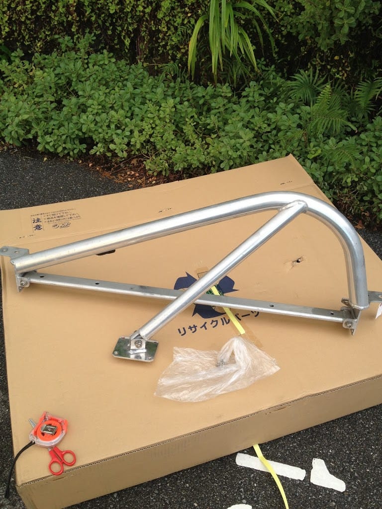 そこで,純正の3点式が突いているところどうしを繋ぐパイプをブレースバーというらしいのだけれど,それをつけることにしました.