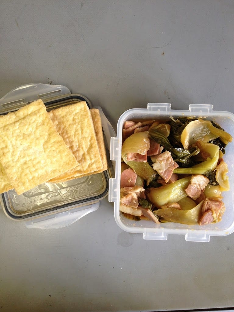 テキトーなトコでチンゲン菜を投入し,焼酎と自家製味噌を入れてフタ,5分弱火,10分蒸らし,フタとって中火,味をみてできあがりー,です.