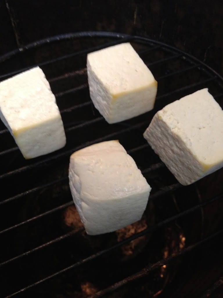 そのとき材料を買いにスーパーに行ったら,シマ豆腐の燻製ってのがありまして,試食が供されておりました.