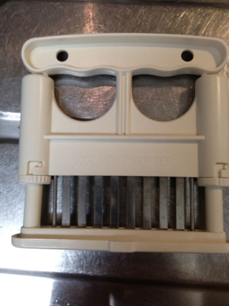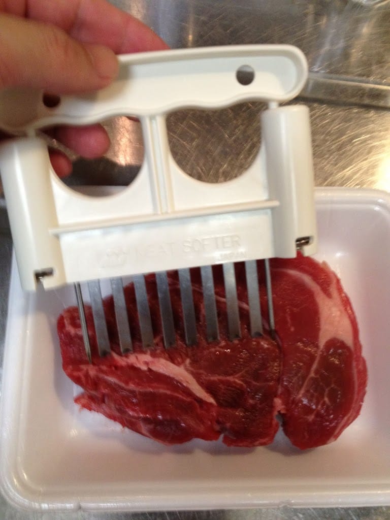 こないだアマゾンで1200円で買った肉刺しで刺します.