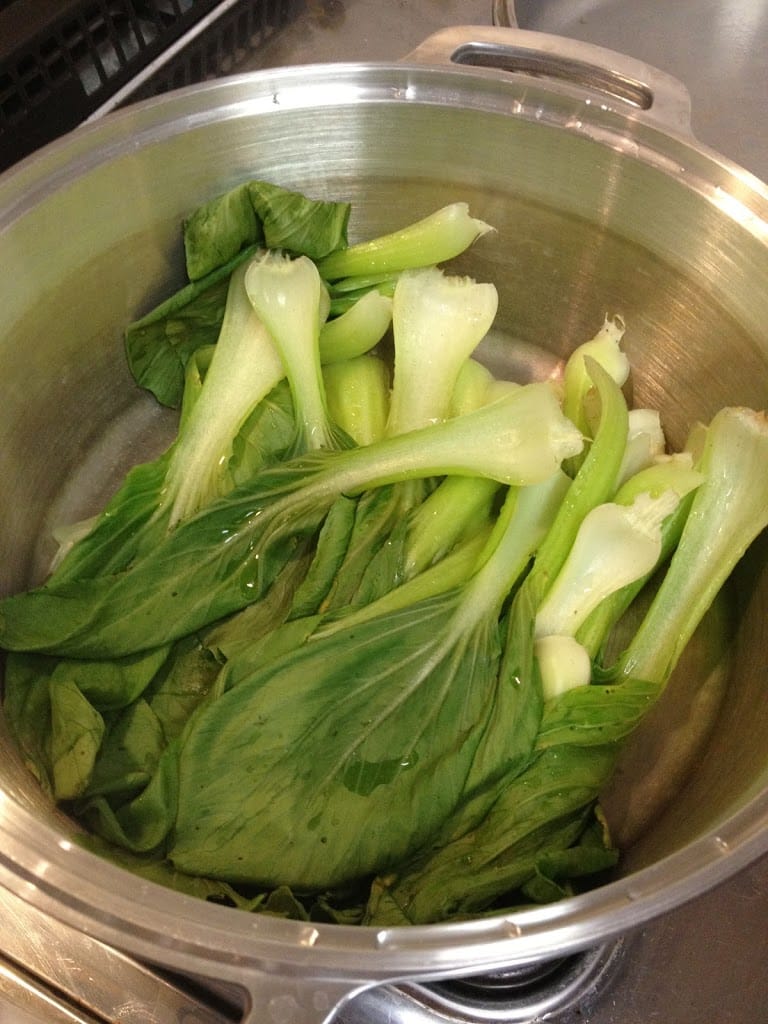 無水鍋の実力を試すべく,いただいたチンゲン菜を蒸してみました.