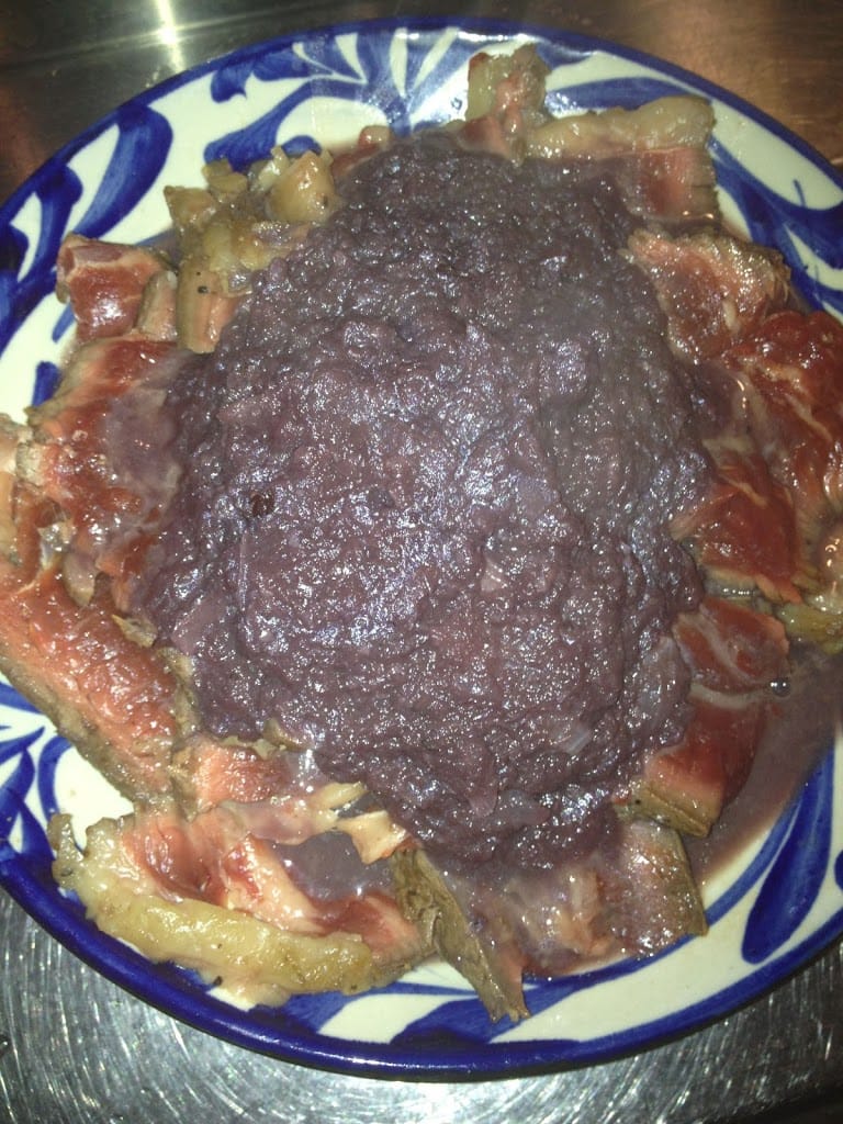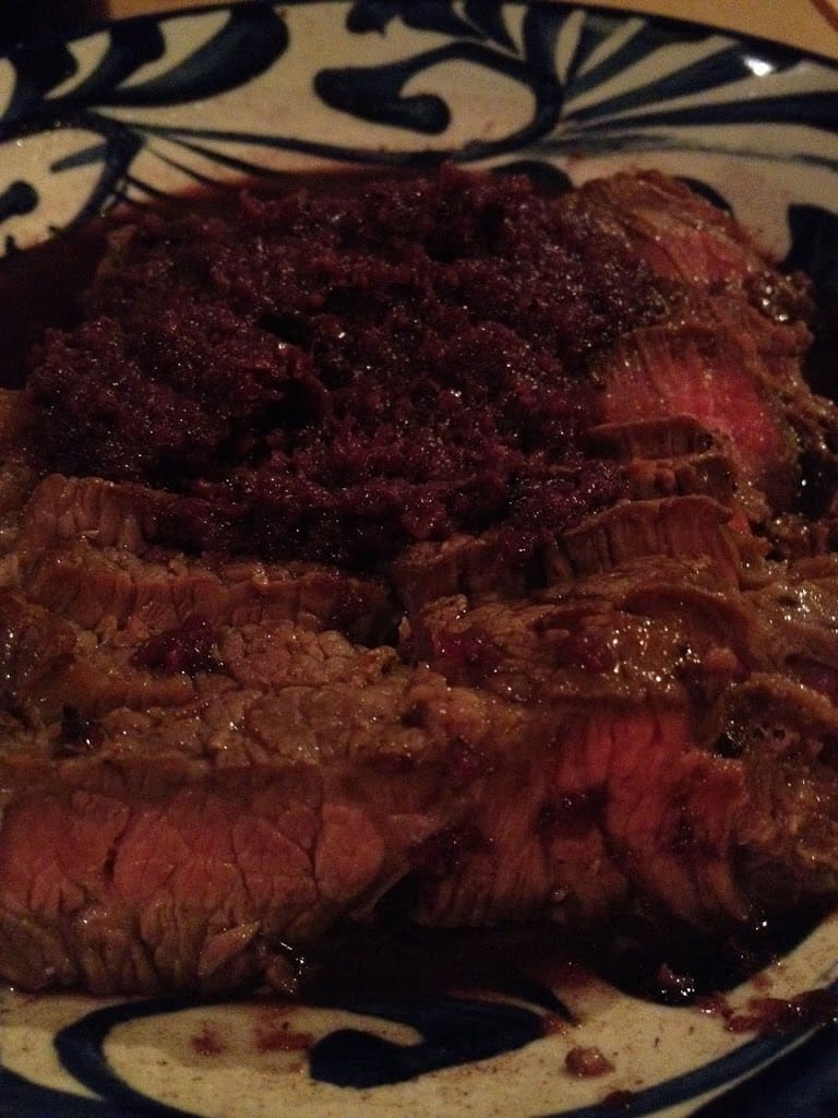 ぶ厚い牛肉のワインビネガーソースかけ(?ローストビーフ?)