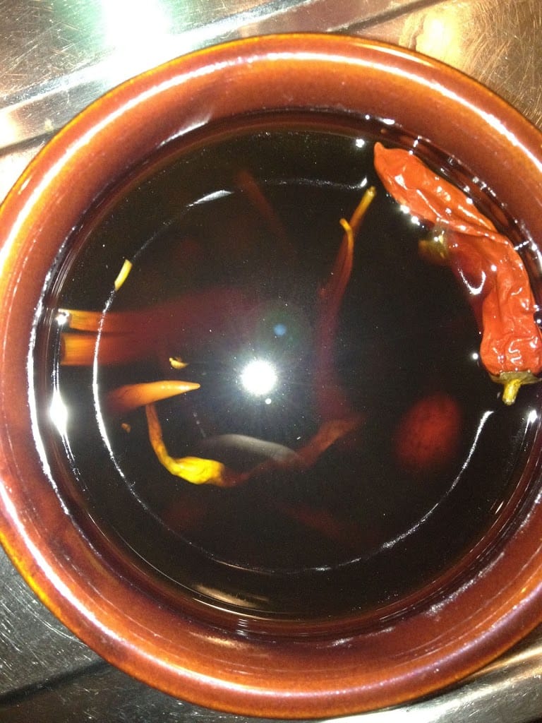 殺菌作用を見込んで,実家から送られてきた獅子唐とかもぶち込んであるよ.