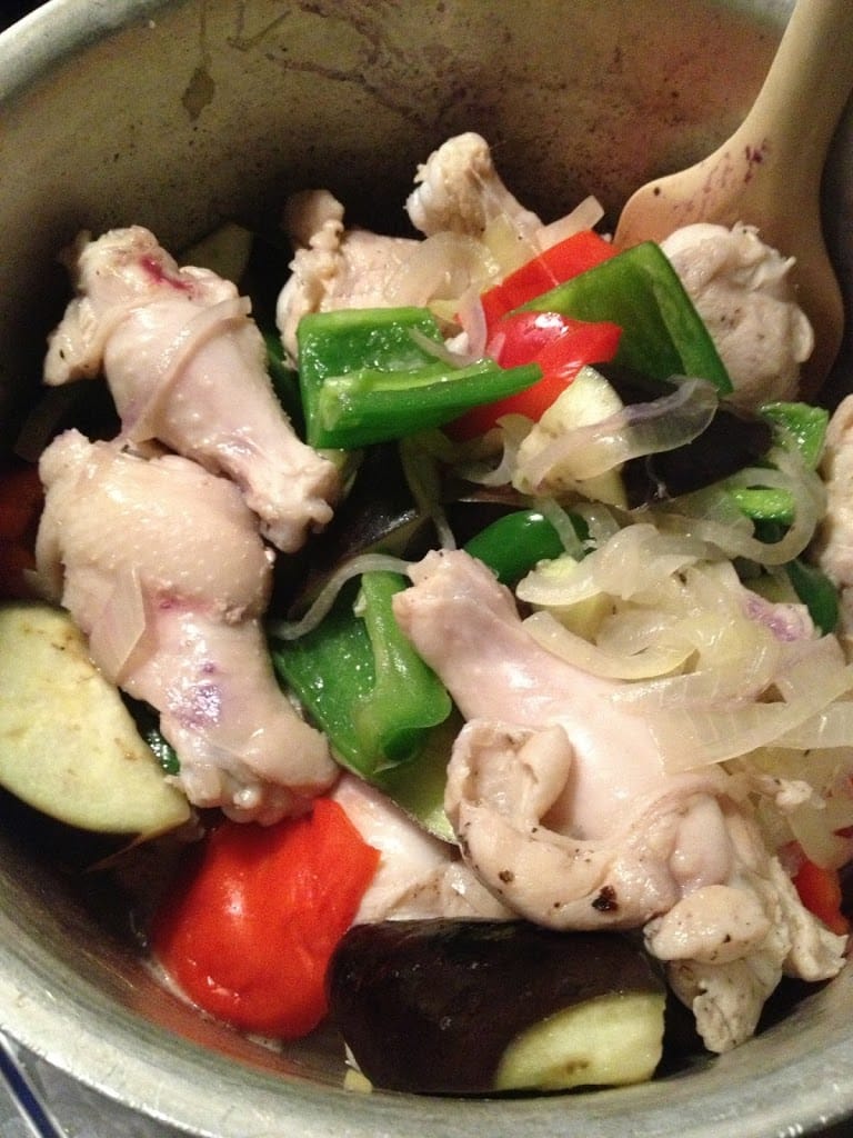 玉ねぎを炒めて,程よいところで鶏肉を投入します.