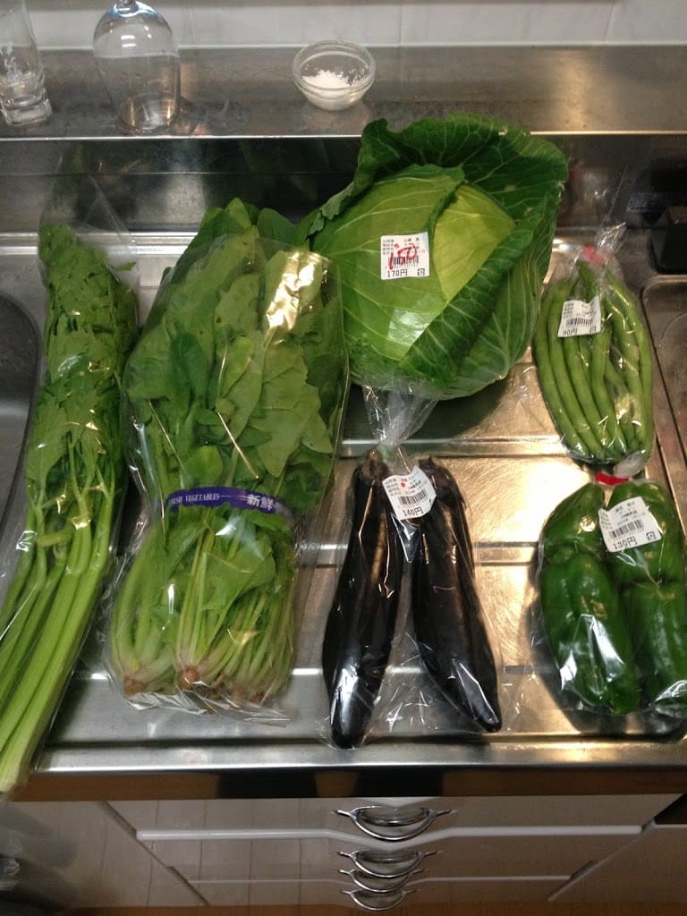 ホウレンソウはお浸しにして,部分的に冷凍かしら.毎度おなじみのキャベツとセロリでスープでも作ろうかなー.ナスとピーマンの味噌炒めも食べたいなー.