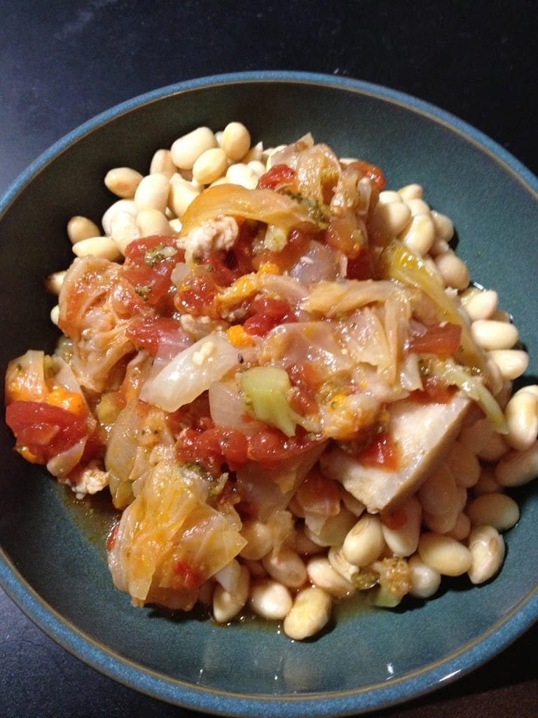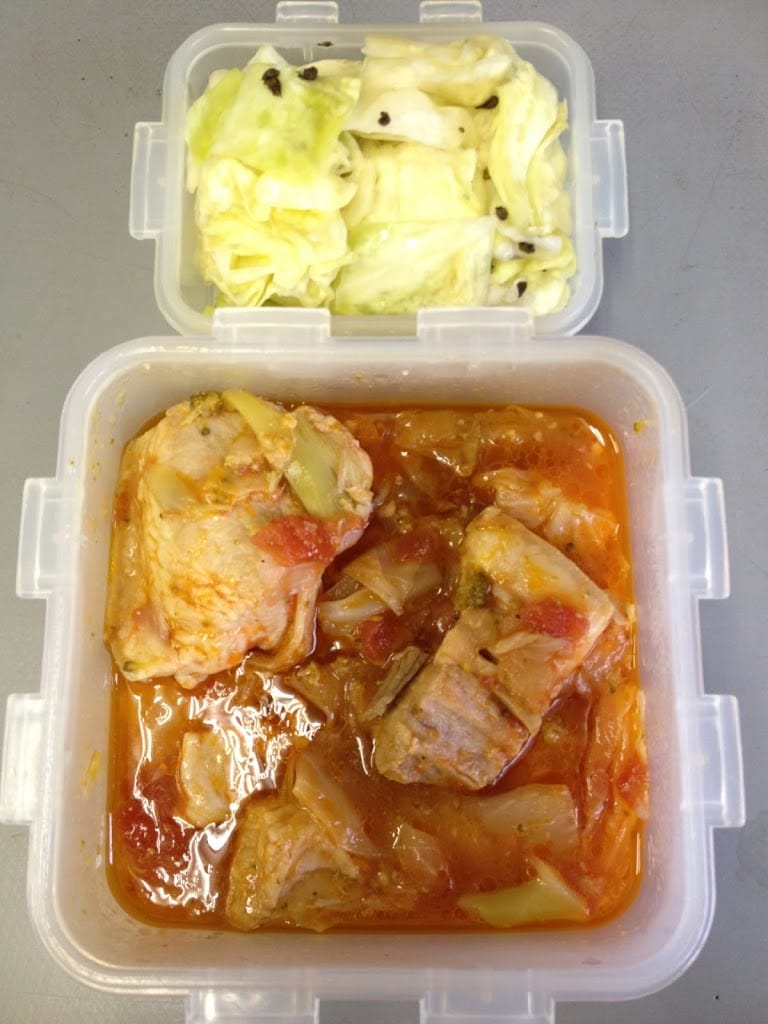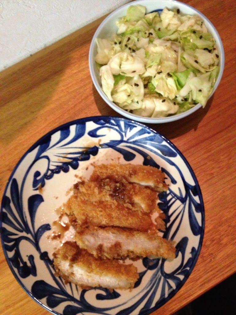 夜:スーパーのトンカツの残りと,キャベツの塩もみ