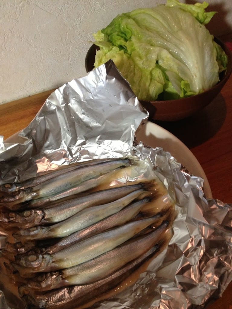 夜:シシャモとレタス
