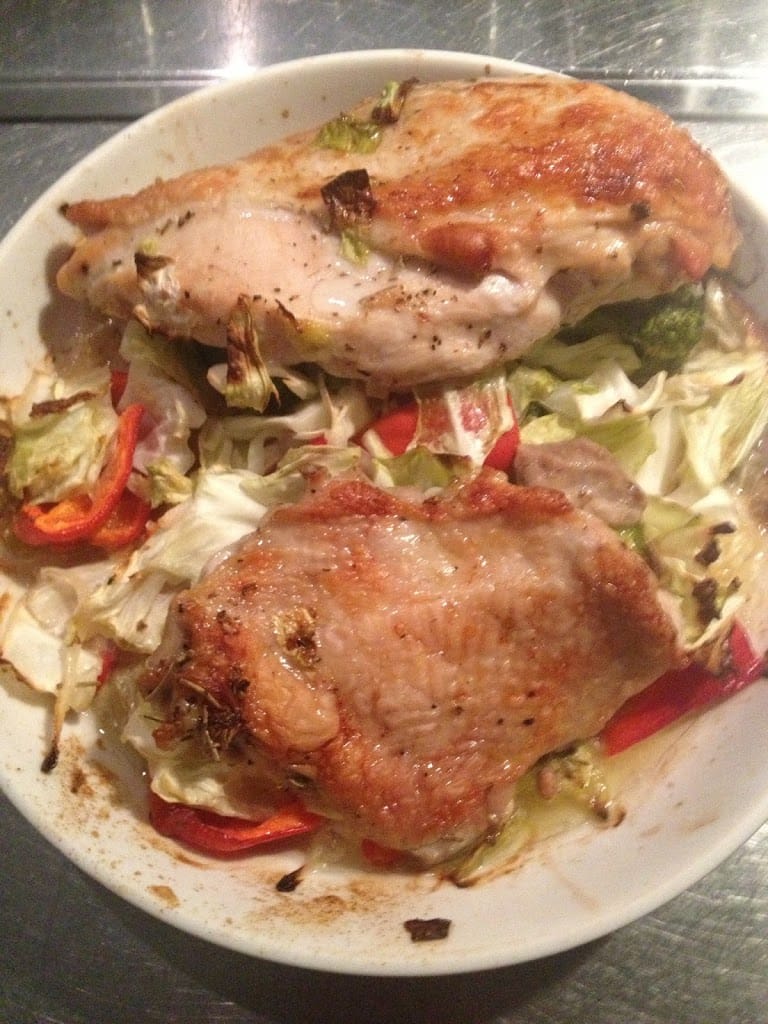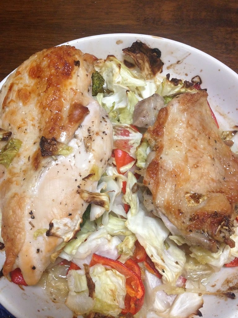 鶏肉を入れて,時々天地換えをしつつ,1時間くらいかなー.