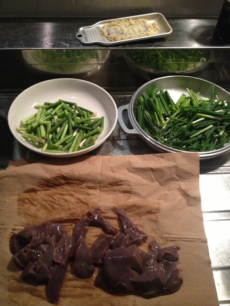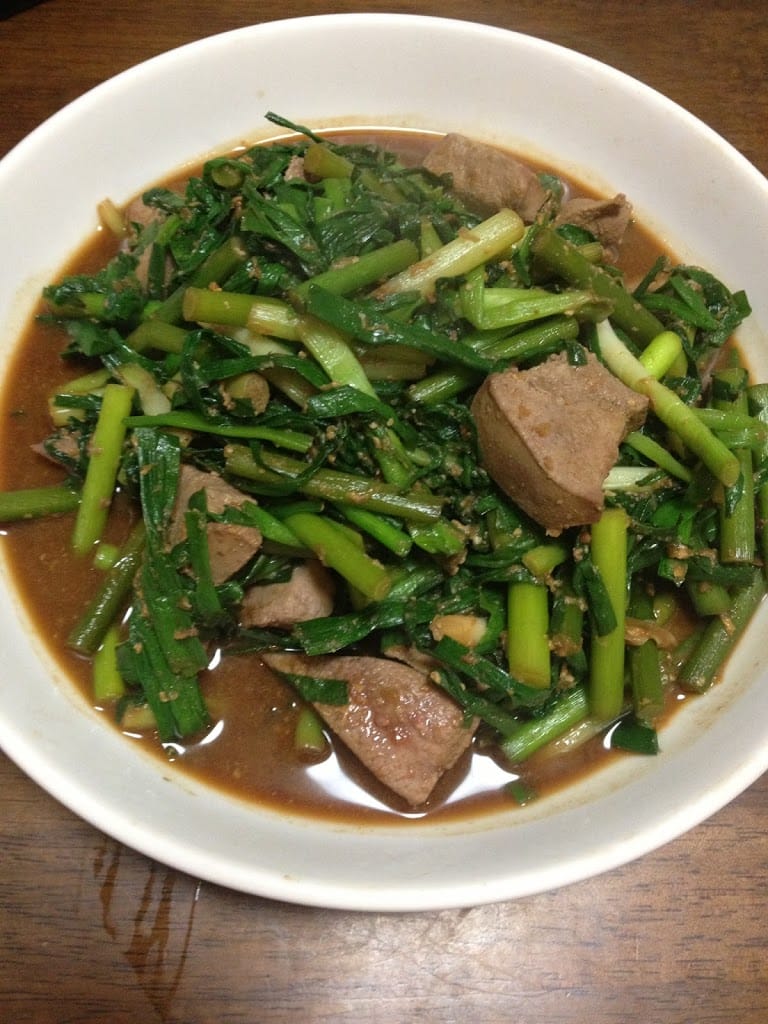 - 無水鍋に油を引いて,レバーにさっと焼き色をつける