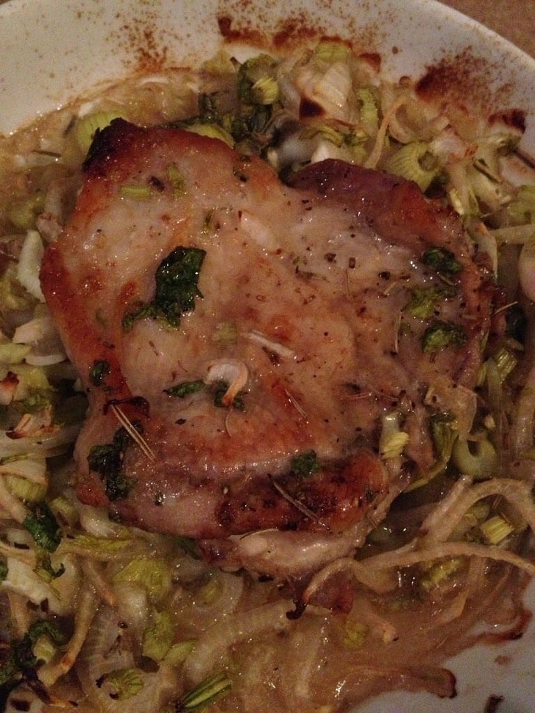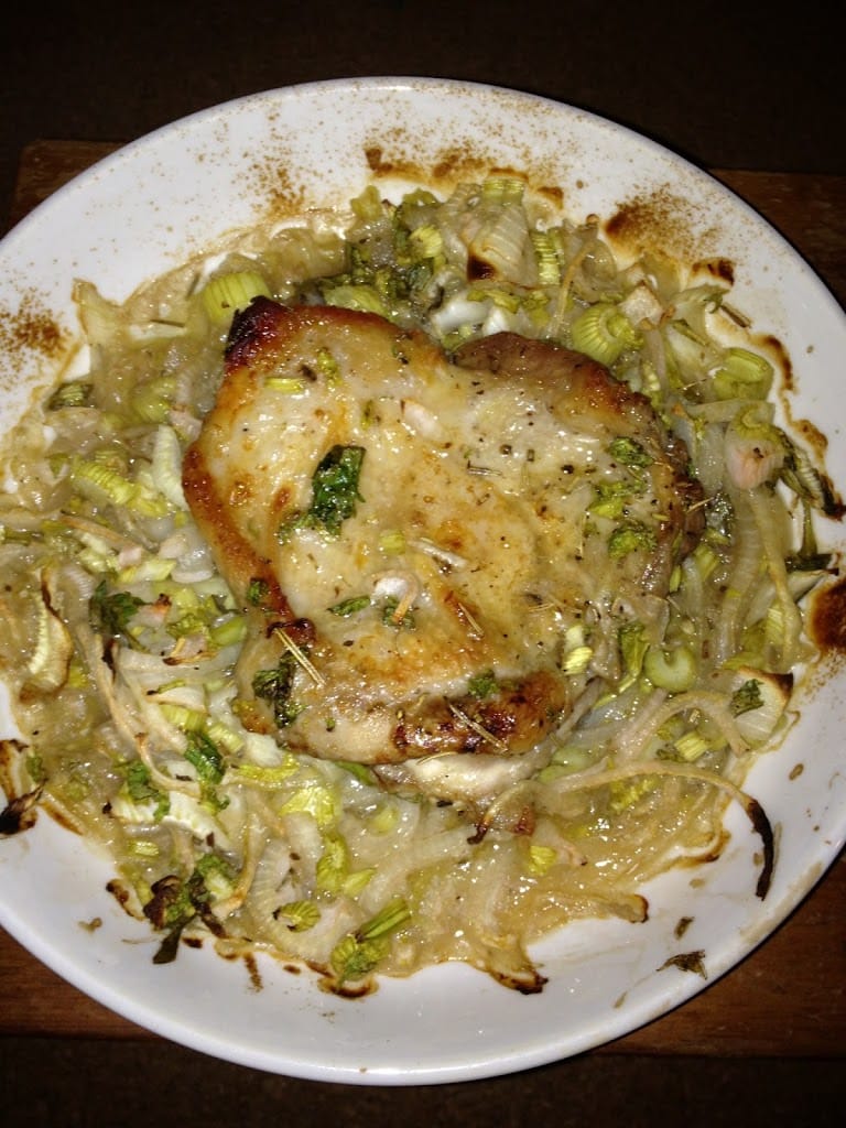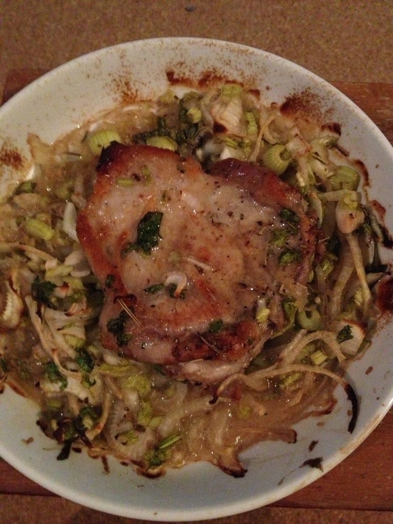 夕方:鶏もも肉をたまねぎなどと漬けてオーブンで焼いたの